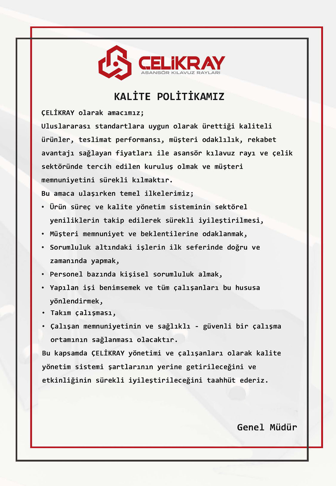 Обеспечить формирование понимания качества у всех наших сотрудников и возможность являться ведущим производителем качественной продукции и надежных поставок с момента начала производства и до отгрузки конечной продукции заказчику,